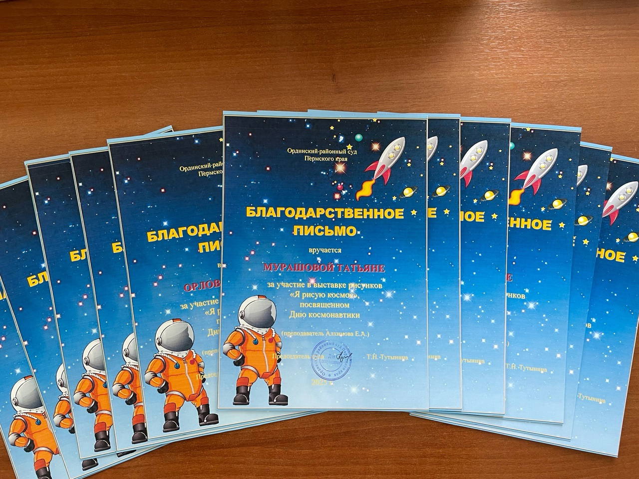12 апреля 2025 года наша страна и весь мир отмечает 64 годовщину с момента первого полета человека в космос. Первооткрывателем стал Юрий Алексеевич Гагарин. В этот день на земную орбиту вывели первый в мире космический корабль-спутник с человеком на борту. С тех пор этот день в России отмечают как День космонавтики. В честь празднования Дня космонавтики среди учеников МБУ ДО «Ординская детская школа искусств» в Ординском районном суде организована выставка детских рисунков «Я рисую космос». Тема космоса всегда интересна детям! Мечты о полете в космос, что нас ждет в других галактиках, с кем подружимся в космосе. Юные художники представили свои работы, изображающие настоящие космические пейзажи: бескрайние галактики, сверкающие звезды, среди рисунков можно увидеть даже изображение инопланетян, передающих привет землянам. Такие выставки не только расширяют представление детей о космосе, но и развивают их творчество и фантазию. Все работы украсили холл здания Ординского районного суда. Участникам выставки вручены благодарственные письма.